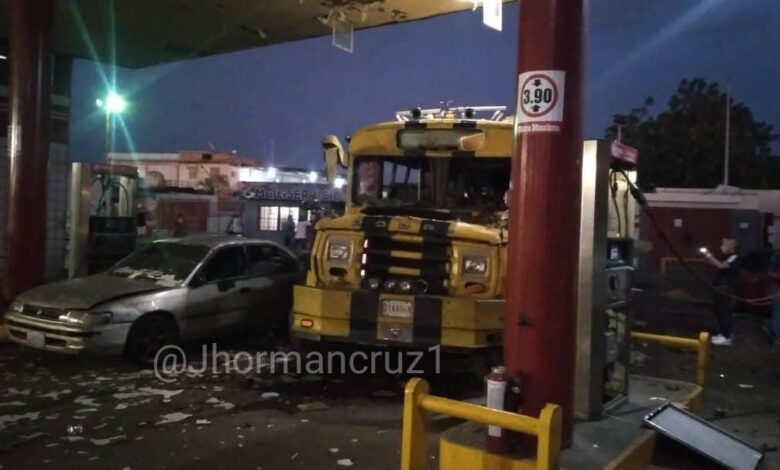 Transporte público explota en una estación de servicio afectando un vehículo de Pdvsa en el Zulia