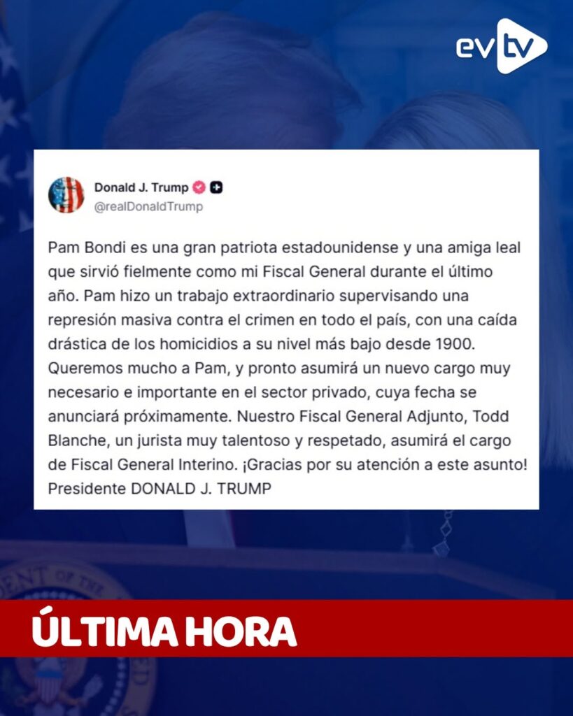 La salida de Bondi se produce apenas semanas después del cese de Kristi Noem, quien se desempeñaba como secretaria de Seguridad Nacional, evidenciando una reconfiguración en el equipo de gobierno.