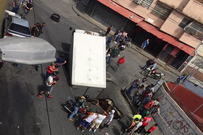 Un camión fue tragado por un mega hueco en Catia