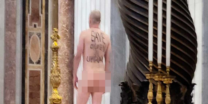 Un hombre se desnuda en la Basílica de San Pedro contra la guerra de Ucrania