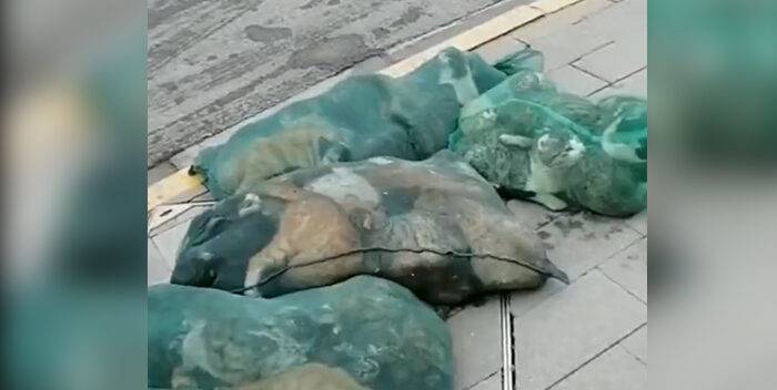 A través de videos difundidos en redes sociales se puede ver cómo personal sanitaria recoge a los animales luego de haberlos asesinado y los arrojan a la parte trasera de una moto.