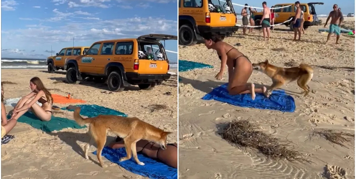 El ataque tuvo lugar cuando el dingo, de cuerpo delgado, paseaba entre los bañistas. De repente, se acercó a una mujer que estaba tomando sol boca abajo sobre una toalla en la arena. Al percatarse de su presencia, la víctima intentó levantarse, pero el animal le mordió el trasero.