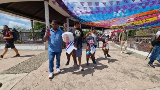 VIDEO: Quemaron piñatas de Maduro, Miguel Díaz-Canel y Daniel Ortega, en vísperas de cumbre migratoria en México