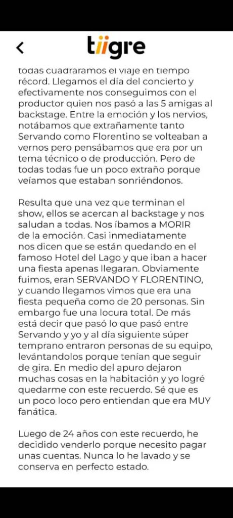 Una mujer puso a la venta a través de un aplicación una prenda íntima (bóxer) que asegura le pertenece al cantante Servando Primera, usada hace más de 20 años tras mantener con él relaciones de tipo sexual.