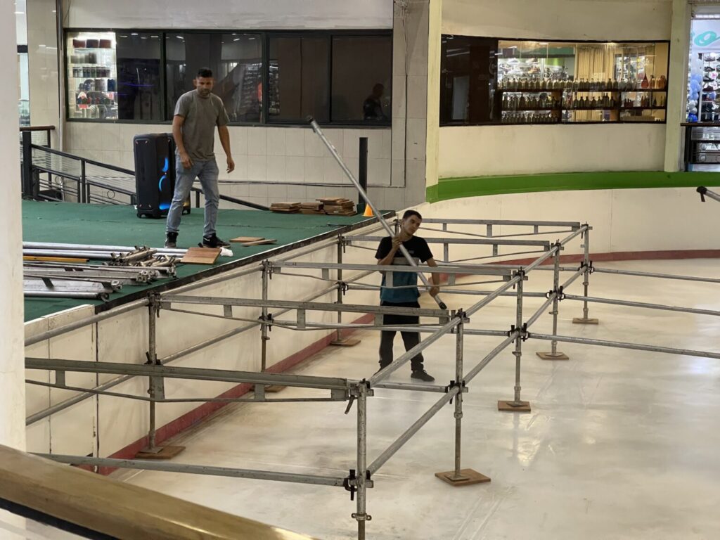 Ayer comenzaron oficialmente los trabajos de montaje y acondicionamiento del espacio, generando gran expectativa entre los visitantes del centro comercial.